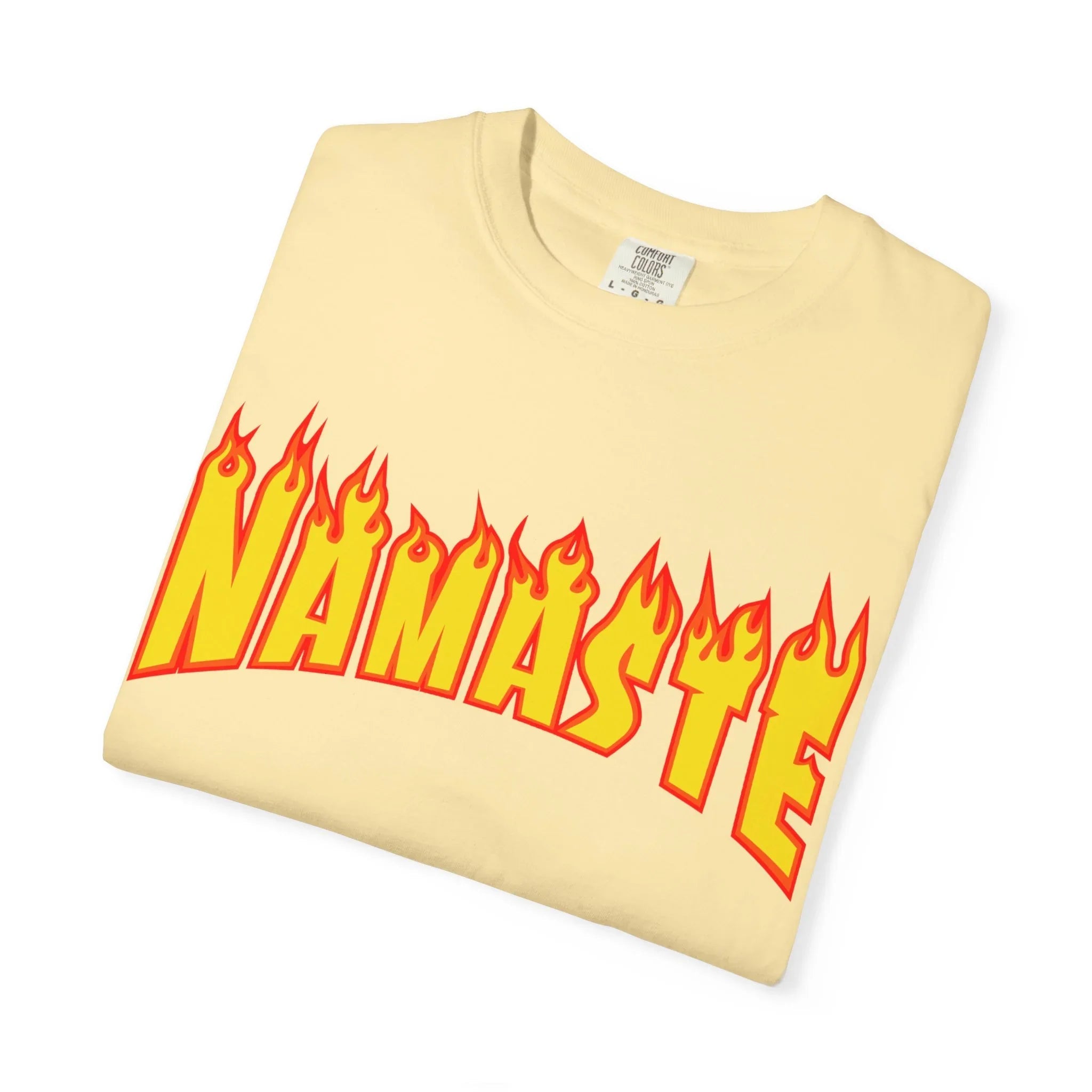 Inspired by timeless motifs, the “NAMASTE” thought meets the iconic spirit of the Thrasher in artful letterpress style on a soft, garment-dyed base. Whether you're flowing through sun salutations or crowd-surfing at a festival, this t shirt carries your energy with ease, comfort, and retro charm.