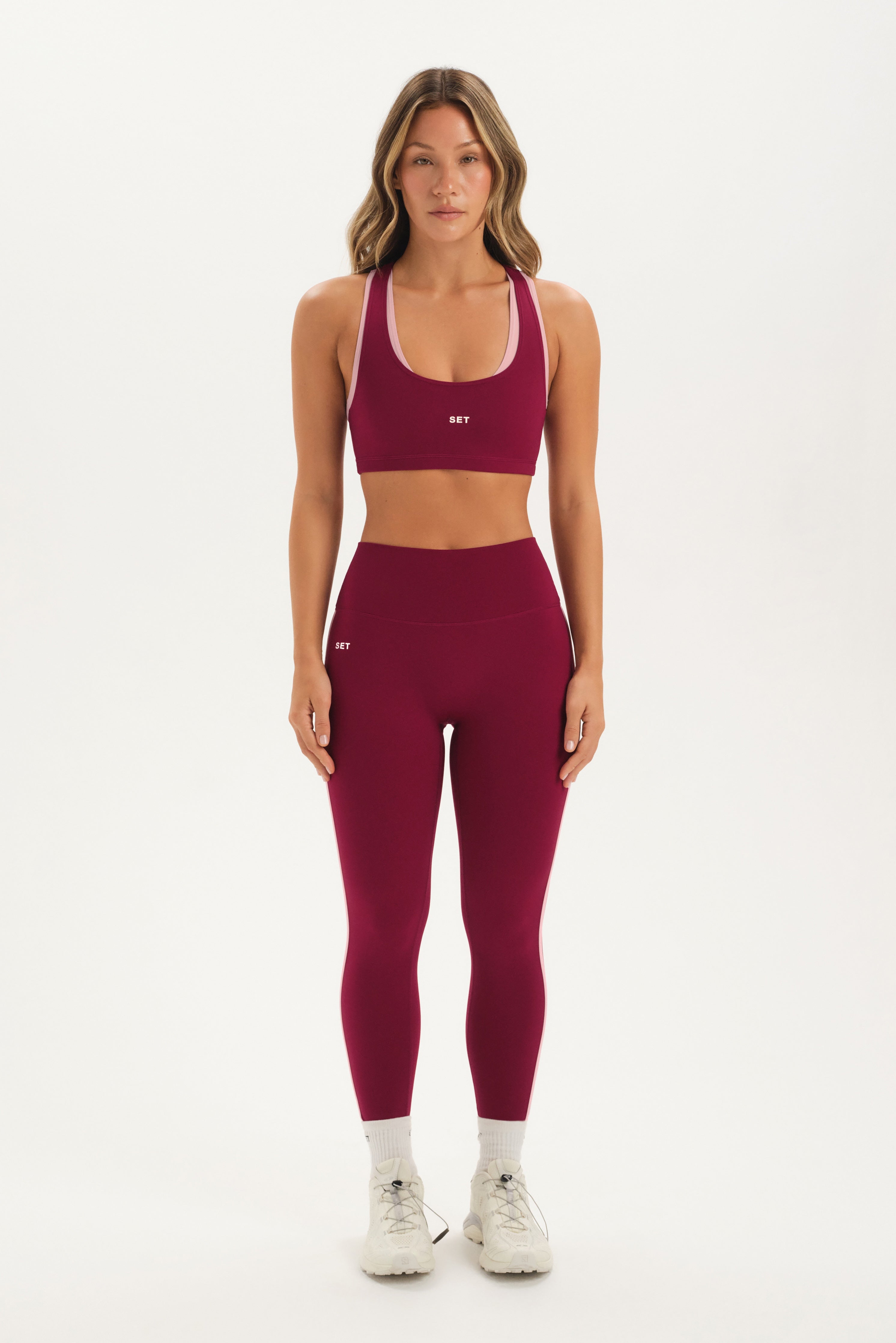 A cooling, medium-support gym bra with a low scoop neckline, wide racerback, and double-layered design for smooth, comfortable performance.